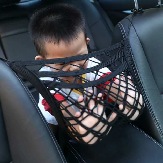 ORGANIZADOR DE MATERIAIS: Com seus compartimentos para armazenamento a rede é perfeita para itens como guarda-chuvas, luvas, cabos de carregamento, etc.