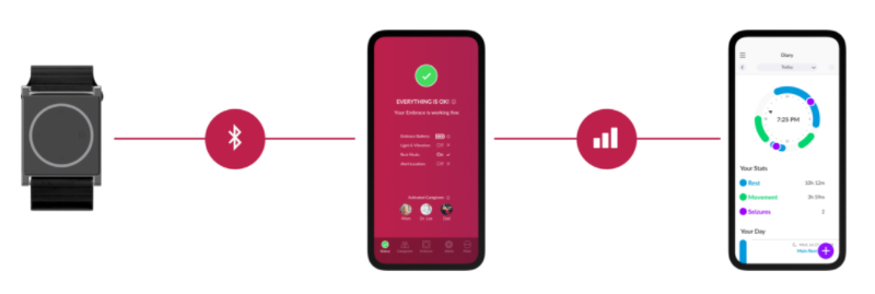 O sensor de pulso monitora a Atividade Eletrotérmica (ETA), que inclui a secreção de suor, um indicador chave da atividade convulsiva. O microchip avançado também monitora os padrões de movimento e temperatura usando um giroscópio e um acelerômetro. É o único sensor de epilepsia do mercado que combina todos esses elementos em um único dispositivo.