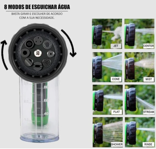 ✔️ Ele possui 8 tipos de bicos e com o auxílio de um seletor giratório você escolhe qual tipo de jato se encaixa melhor à sua necessidade.