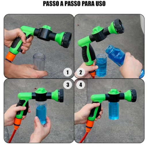 ✔️ ECONOMIZE ÁGUA E SABÃO Com um recipiente de sabão embutido, você pode escolher entre esguichar apenas água ou água e sabão, utilizando sempre a dosagem correta através do medidor e economizando cada vez mais nas lavagens do seu carro ou animal de estimação.